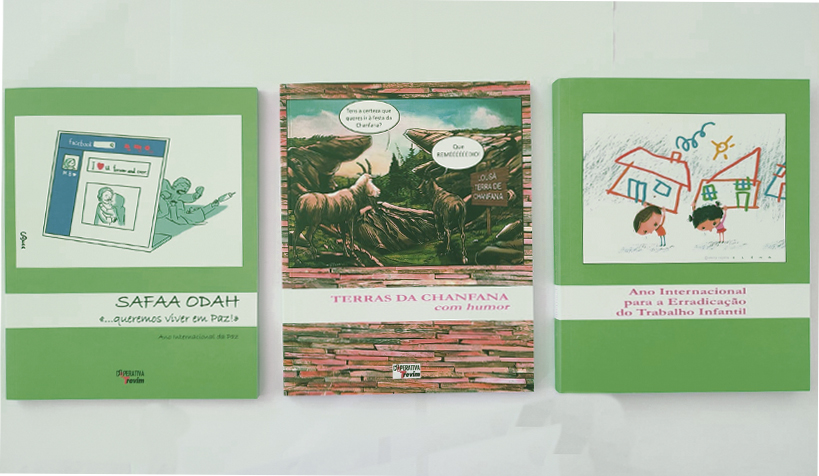 “Ano Internacional da Paz – Safaa Odah, um humor palestiniano” (64 pág.), inclui desenhos da artista palestiniana que usa o cartune para denunciar aspetos da vivência na Faixa de Gaza, onde reside. Estes dois livros têm um custo de cinco euros.